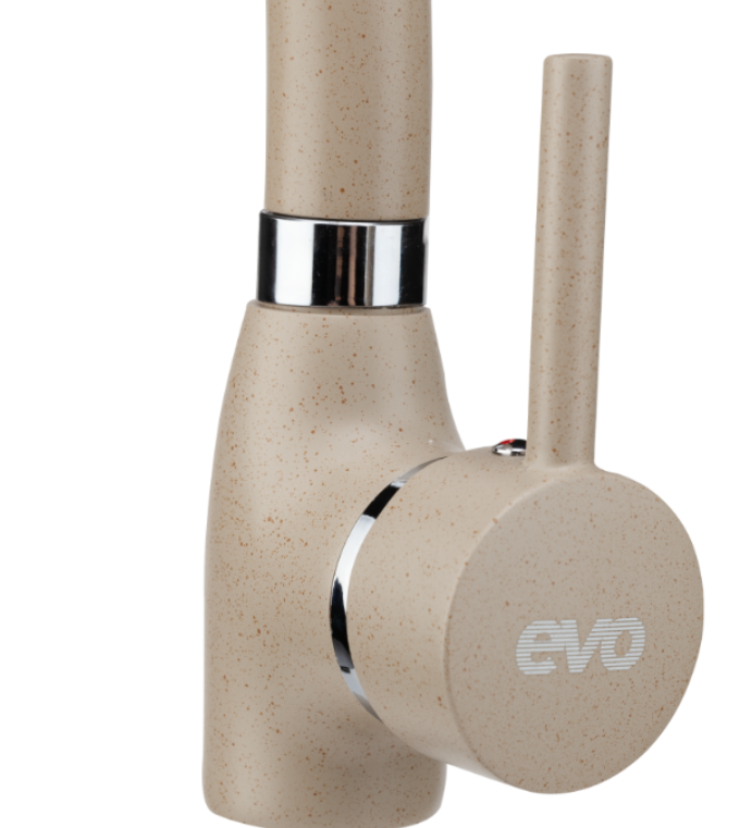 Bateria EVOSANITARY de tip monocomanda, are corpul confectionat din alama cu un finisaj facut prin vopsire in camp electrostatic.