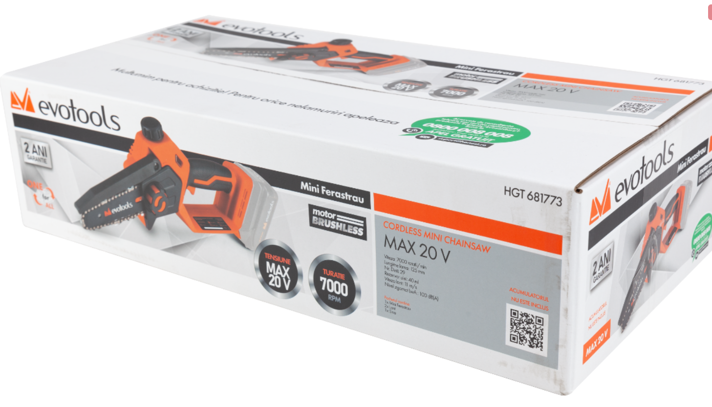 Specificatiile tehnice includ un voltaj impresionant de MAX 20V, o viteză de rotație de 7000 rpm și o viteză a lanțului de 11 m/s. Cu o capacitate a rezervorului de ulei de 40 ml și un nivel de emisie a zgomotului de doar 100 dB, acest utilaj se remarcă prin performanță și confort.