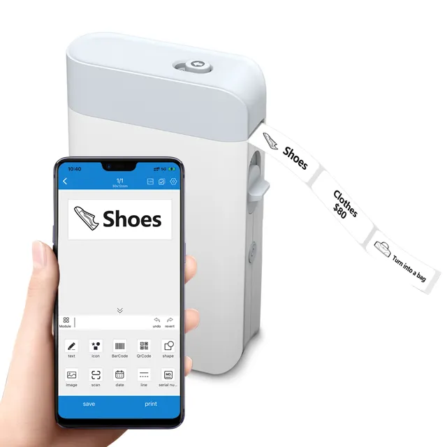 Aplicație dedicată: "iLabel", disponibilă pentru descărcare pe dispozitive mobile, oferă multiple șabloane, pictograme și fonturi pentru personalizarea etichetelor.