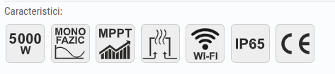 - Comunicații : RS485, WLAN prin invertor incorporat modul WLAN