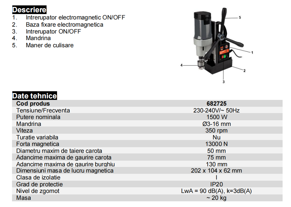 Mașină de găurit cu talpă magnetică este un echipament specializat, conceput pentru a efectua găuri precise in materiale metalice, utilizand o bază magnetică care asigură fixarea fermă pe suprafața de lucru. Acest tip de mașină este ideal pentru aplicații industriale și de construcții, unde portabilitatea și stabilitatea sunt esențiale.