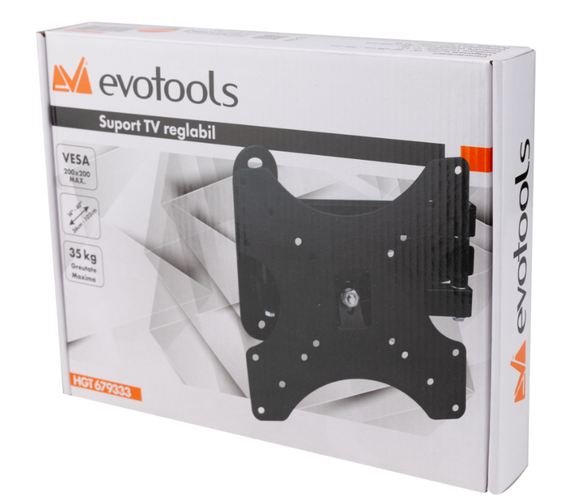 Suportul TV reglabil EvoTools este un suport cu montare pe perete pentru TV LCD / plasma sau monitor cu diagonala intre 36-102 cm (14’’- 40’’).
